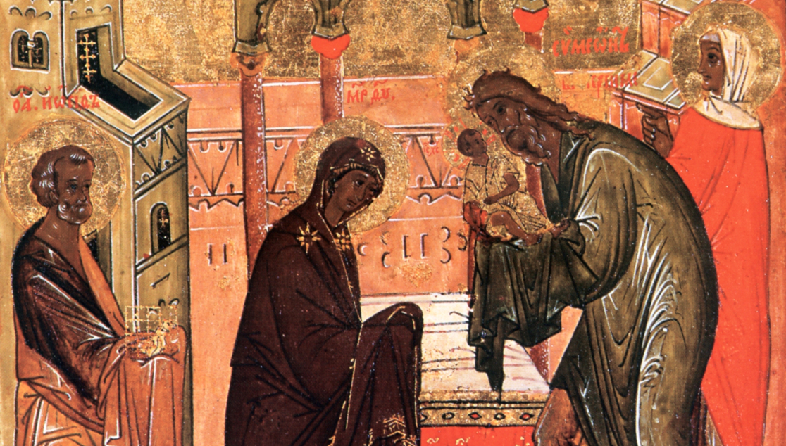Взяв на руки Богомладенца, Симеон произнёс пророческие слова: «Ибо видели глаза мои спасение Твоё, которое Ты уготовал пред лицом всех народов, свет к просвещению язычников».